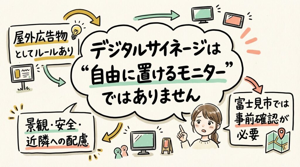 富士見市でデジタルサイネージを設置する前に|許可・ルール・確認ポイントをわかりやすく解説