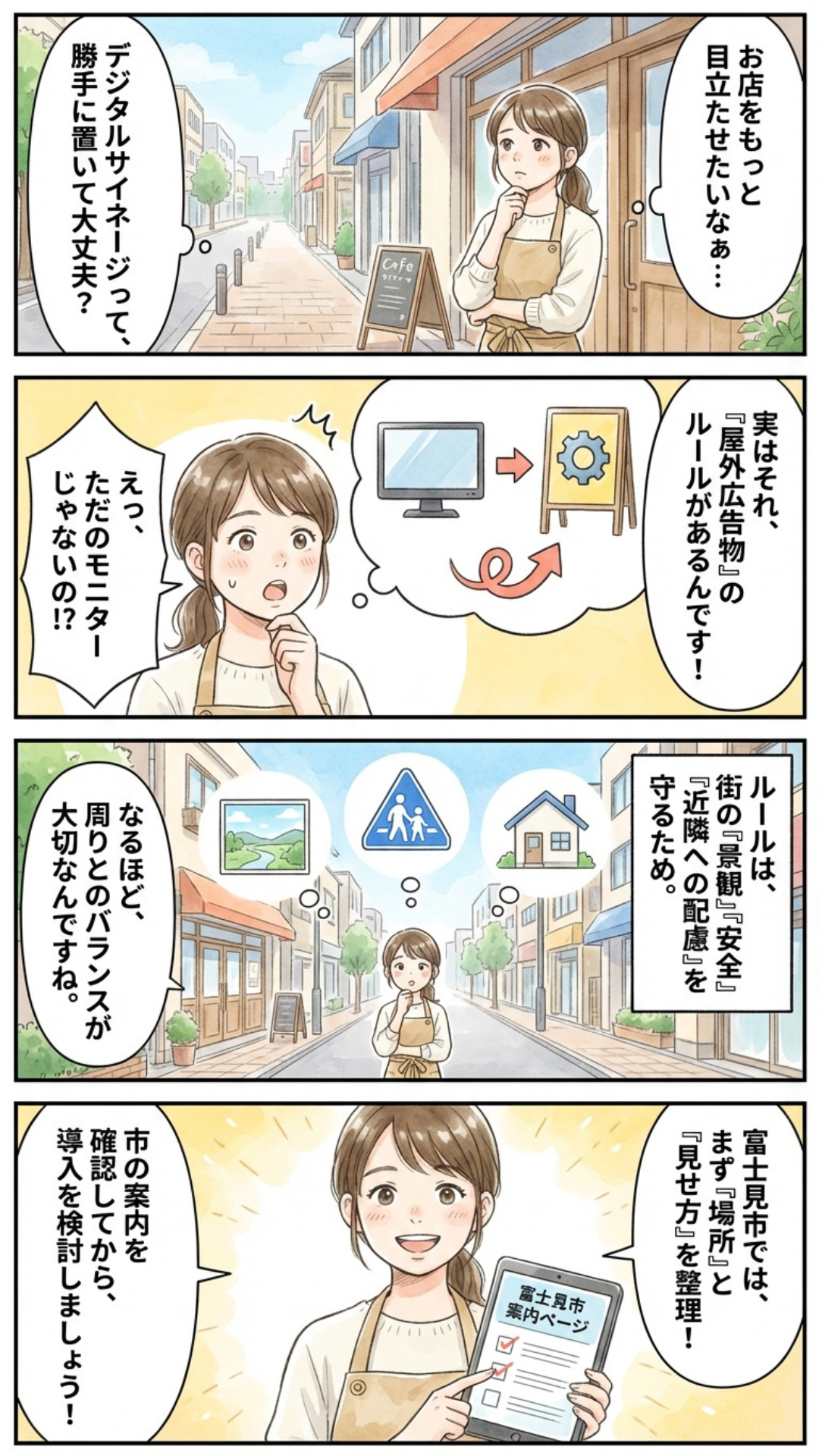 デジタルサイネージは、ただのモニターのように見えても、屋外に設置する場合は“看板”としてのルールが関わってきます。